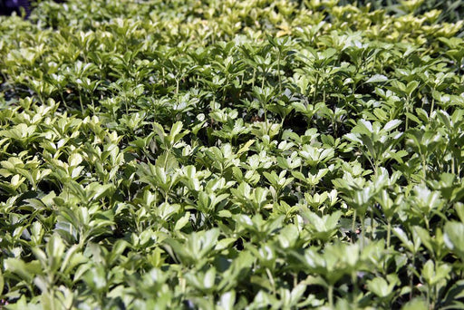 H x S: 8" x 10" Evergreen shade ground cover. Rapid spreader with white flowers. Size: 3" Zone 1 - 8