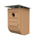 Nordic inspired bluebird house constructed of renewable eucalyptus wood with teak wood finish is the perfect choice for quality bluebird shelter. The house opening is specific to bluebirds and prevents larger birds from entering. Ventilation is provided under the white metal powder coated roof. Recommended placement should be done in the early spring with the box mounted 4-5 feet above the ground facing an open field.