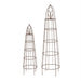 Arch Top Topiary Set consists of 2 small and 2 large items plus stakes. All Deer Park Ironworks® products feature durable, heavy gauge metal construction and are protected with a baked on, powder-coated finish. The natural patina appearance nicely complements any decor or color scheme.